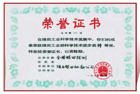 荣获煤炭工业部科学技术进步奖特等奖