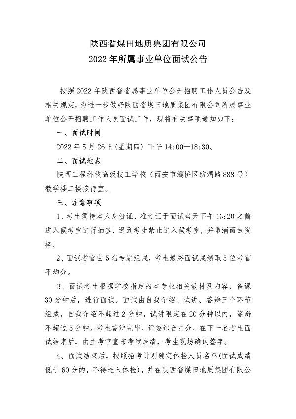 2022年陕西省煤田地质集团公司所属事业单位公开招聘工作人员资格复审...