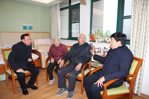 蒋波、谢辉与离休老干部田明亲切交谈,感谢他对企业发展所付出的努力和作出的奉献,关心询问田老身体健康状况,并叮嘱要保重身体,安享晚年生活。