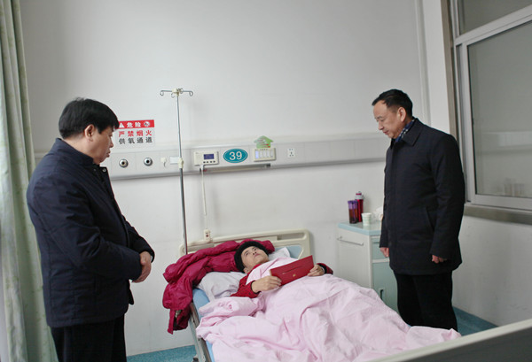 蒋波一行前往西安唐都医院,慰问困难职工高茹,了解高茹的身体状况和医治情况,嘱咐其安心养病,保持乐观心态,勇敢面对并战胜疾病。
