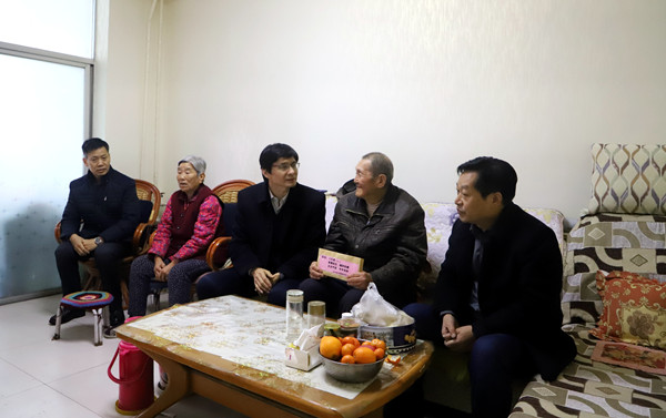 1月15日,雪花纷飞,威廉希尔williamhill中文党委副书记、副总经理董卫峰、党委工作部主任薛有斌、工会干部薛选宁一行到一九四公司,走访慰问了一九四公司劳模、困难党员和困难职工,为他们送去慰问金和春联,把党的关心、关怀与工会组织的温暖送到了广大职工心坎上。一九四公司党委书记、总经理岳正喜,党委副书记、工会主席解云峰陪同慰问。