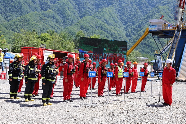 8月26日,陕西投资集团有限公司2020年页岩气井控突发事件应急演练在煤田地质油气钻采有限公司陕镇页1井施工现场成功举行。此次演练旨在检验地勘单位快速应对突发生产安全事故的预警响应能力、应急处置能力和协同作战能力,全面提升地勘单位应急管理水平。陕西投资集团有限公司总工程师李智学,威廉希尔williamhill中文副总经理姚建明,镇巴县政府副县长孙洁,汉中市应急管理局、镇巴县发改局、镇巴县应急管理局、镇巴县消防救援大队、永乐镇政府等地方政府,中石化勘探分公司,以及集团公司所属企业共计50余人观摩演练。