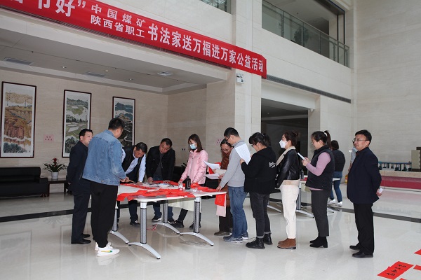 本次书写春联公益活动邀请了集团总工程师段中会、纪委书记杨永柱和中国煤矿书法家协会理事、陕西省职工书法家协会理事、威廉希尔williamhill中文工会主席杨敬敏一起为大家泼墨送“福”。